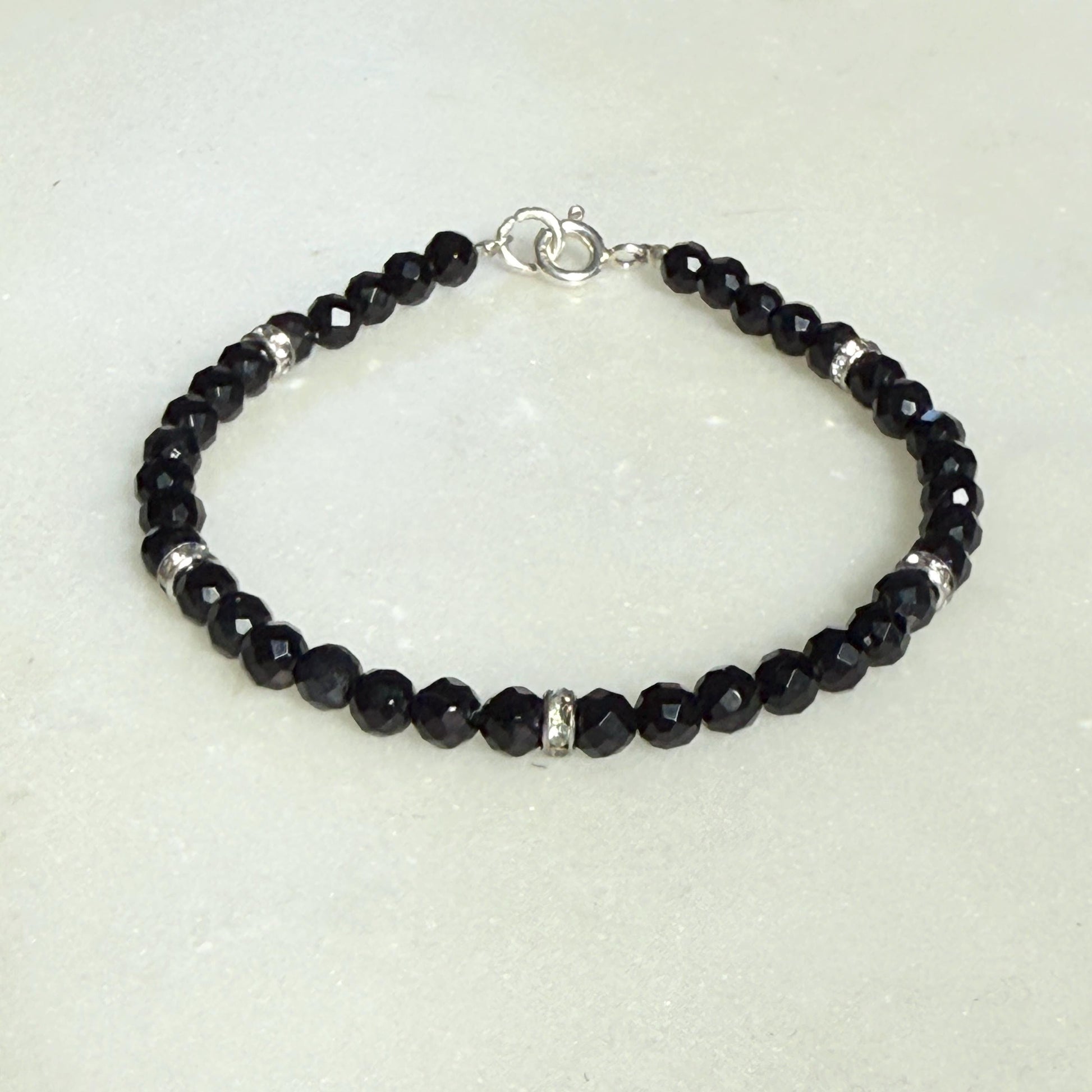 Onyx Silver Bracelet, Friendship Black Birthstone Bracelet