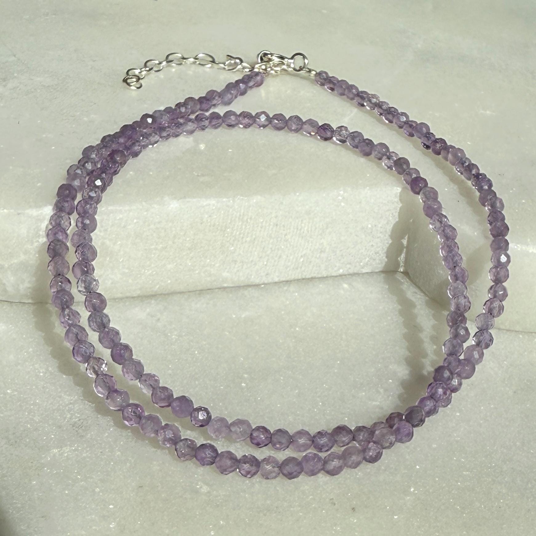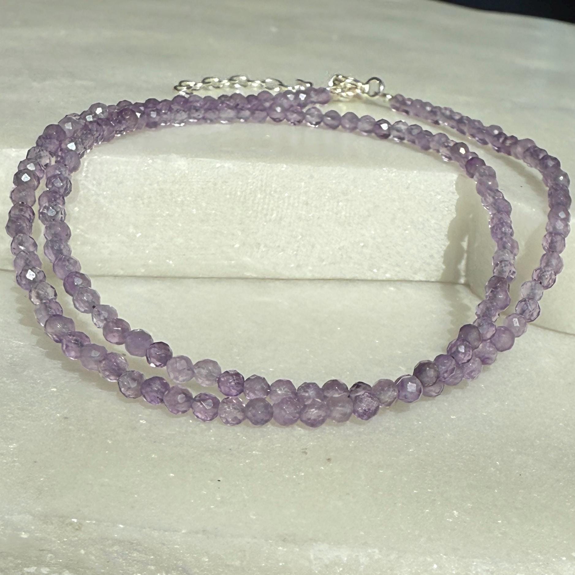 Dainty Natural Amethyst Gemstone Beaded Choker Necklace is crafted by hand using tiny genuine amethyst gemstone beads (2.5 mm) and premium 925 sterling silver.