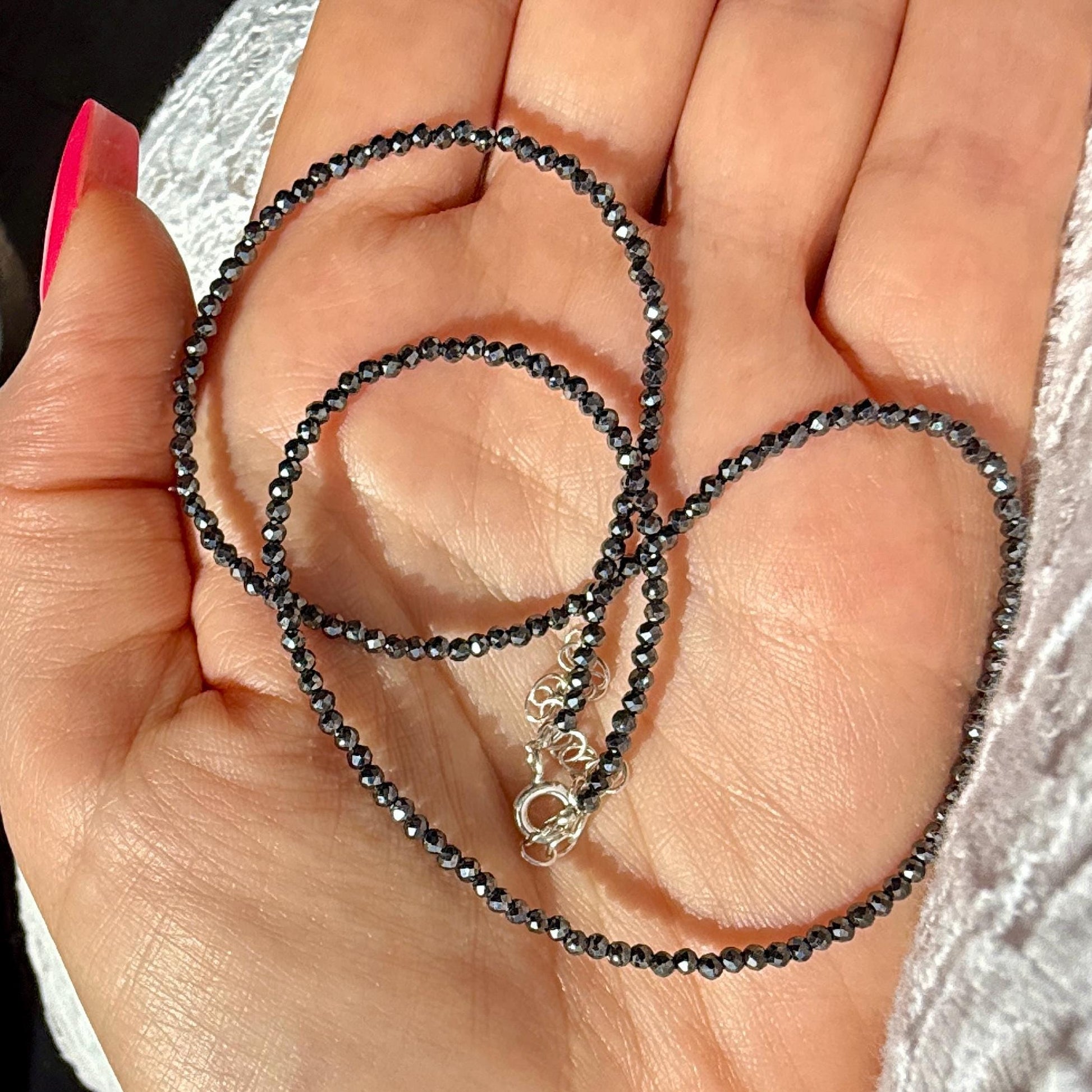 Natural Hematite Gemstone Beaded Choker Necklace is crafted by hand using natural gemstones and premium 925 sterling silver.