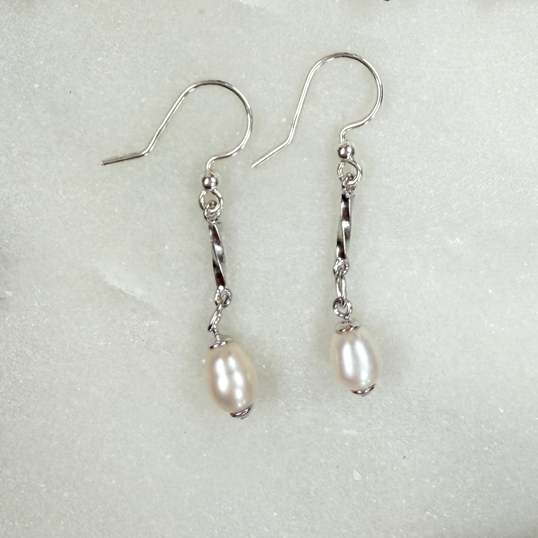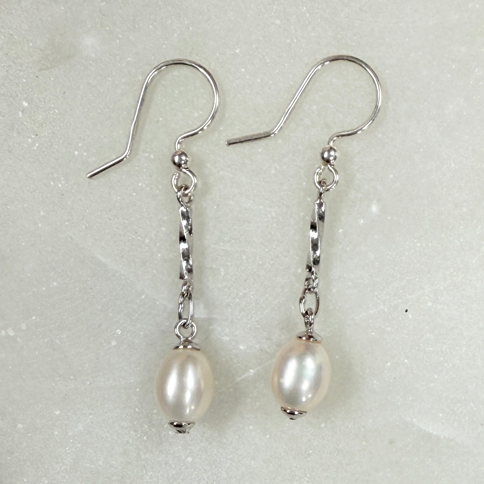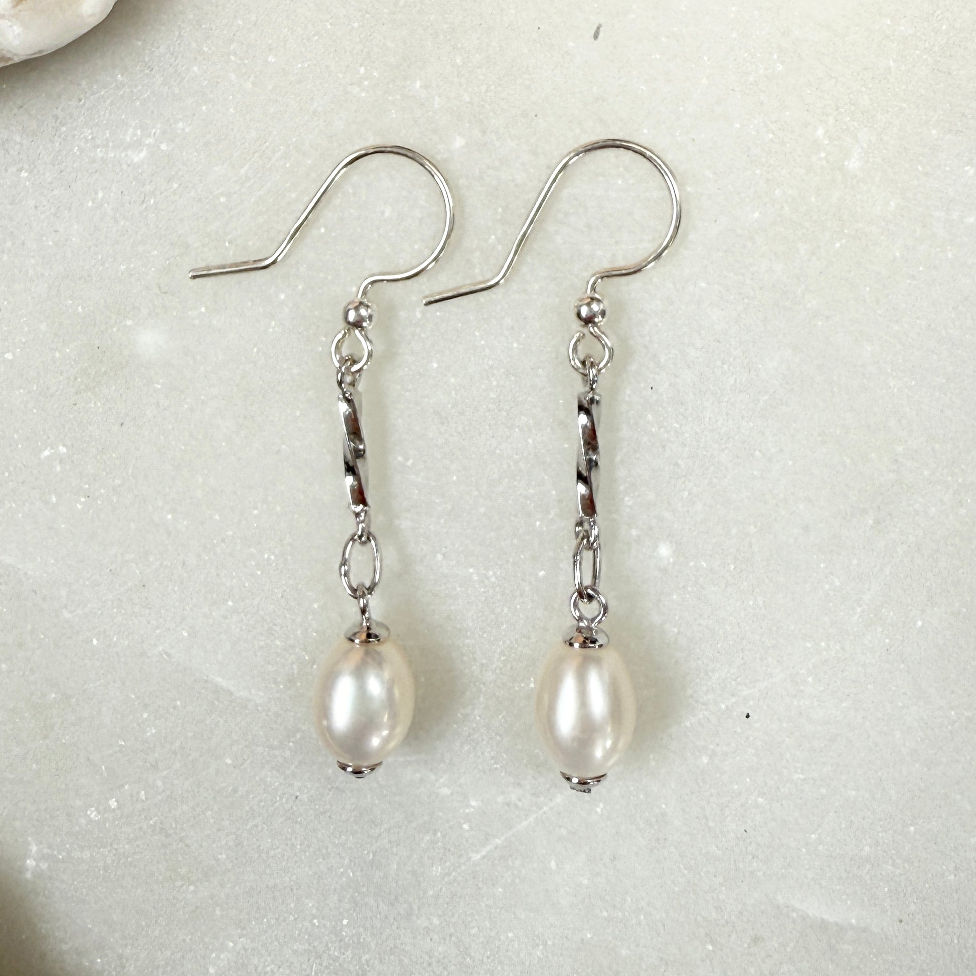 Freshwater Pearl Long Drop Earrings: Sterling Silver Bridal Jewelry